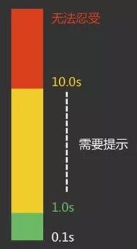 如图,如果页面加载时间超过10s那么用户就会离开,如果1s--10s的话就需要有提示,但如果我们的页面没有提示的话需要多快的加载速度呢?是的,1s 。