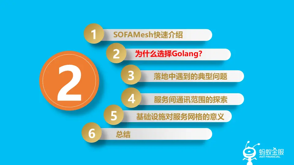 - 其次给大家介绍了选择 Golang 的原因,主要是因为语言栈的长期选择。如果有正在进行 Service Mesh 技术选择的同学,可以作为参考。如果和我们一样,更愿意在未来保持 Golang 和 Java 为主要语言栈,则可以参考我们的方案,当然我们更希望你们可以和我们一起来共建 SOFAMesh 这个开源项目