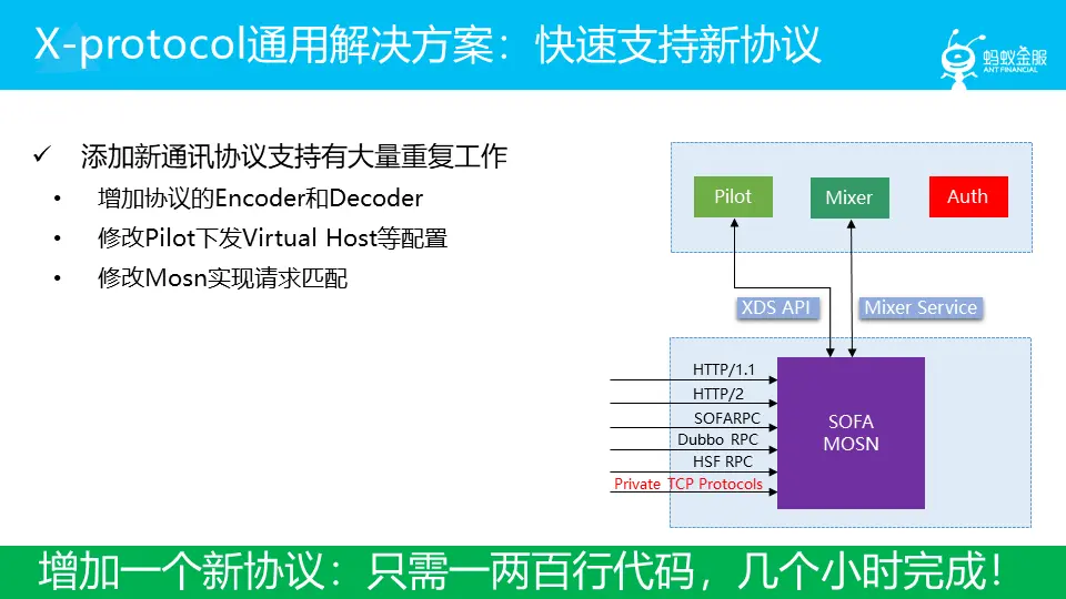 而我们 SOFAMesh,在第一时间就遇到和 Istio/Envoy 不同的情况,我们需要支持 REST 和 gRPC 之外的众多协议: