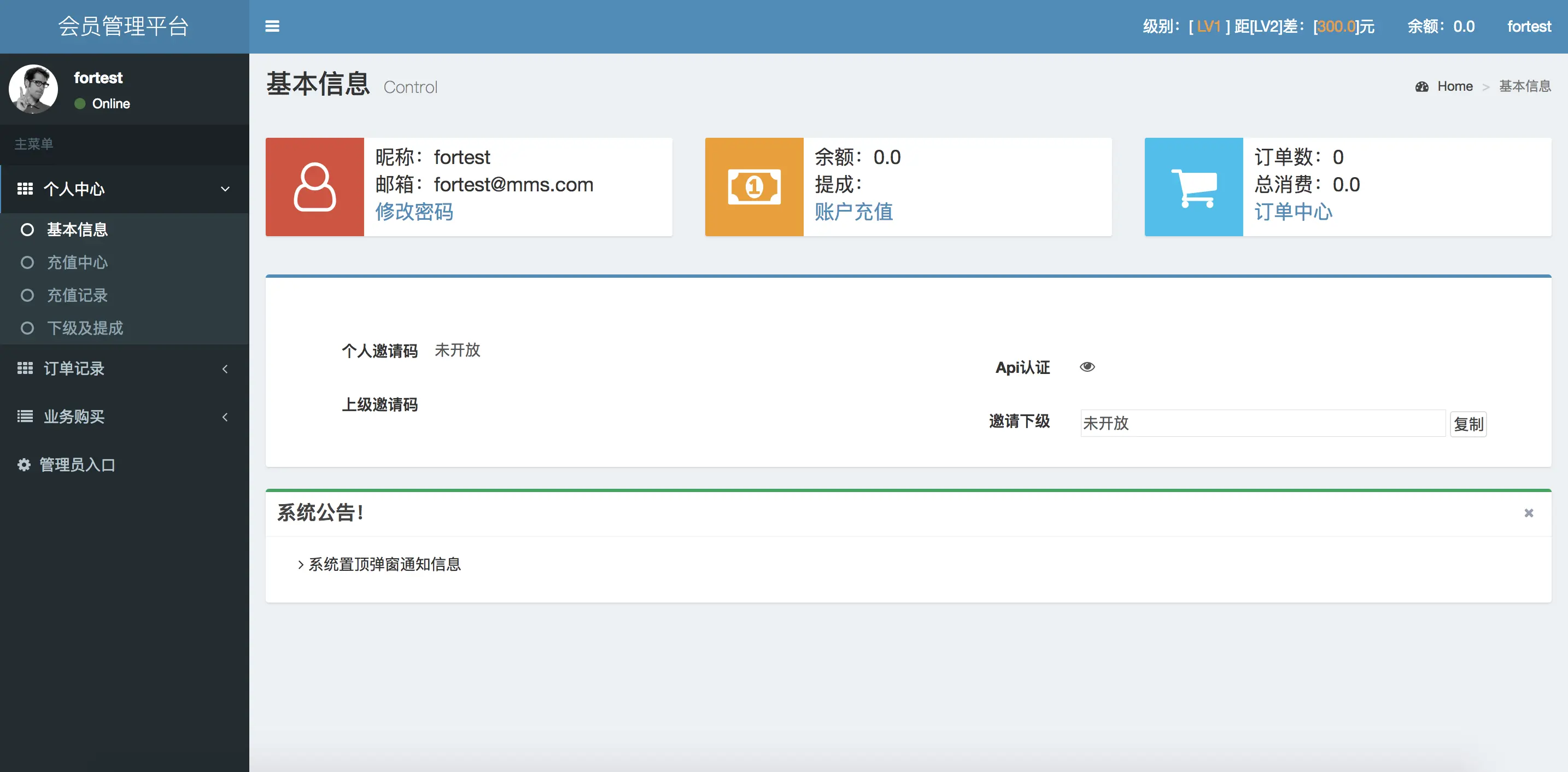 2、会员管理: 可以对会员进行管理,比如设置是否可以登陆,是否可以邀请下级,给会员设置特价等。