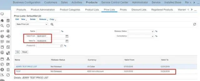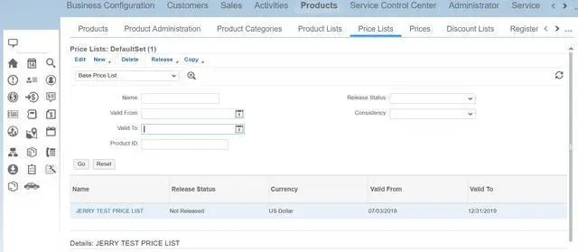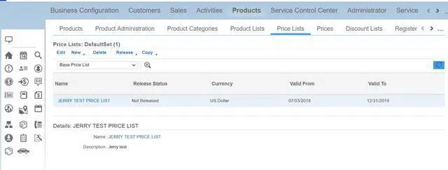 SAP C4C的price list实例可以在工作中心Products,视图Price Lists里看到。