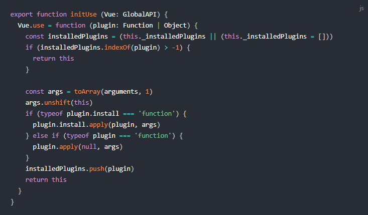 install.installed = true //为了确保install逻辑只执行一次