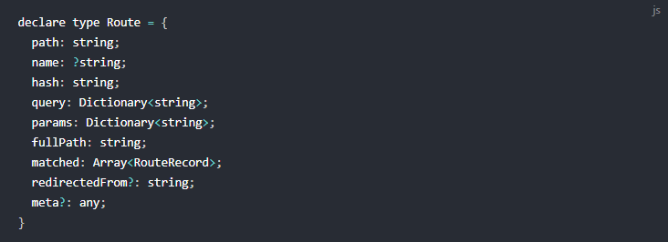 Route它除了描述了类似 Loctaion 的 path、query、hash 这些概念,还有 matched 表示匹配到的所有的 RouteRecord。