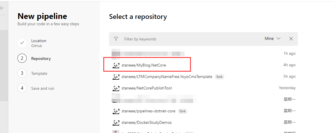 选择代码库: 这里选择你的代码库,这里我选择我的个人博客项目