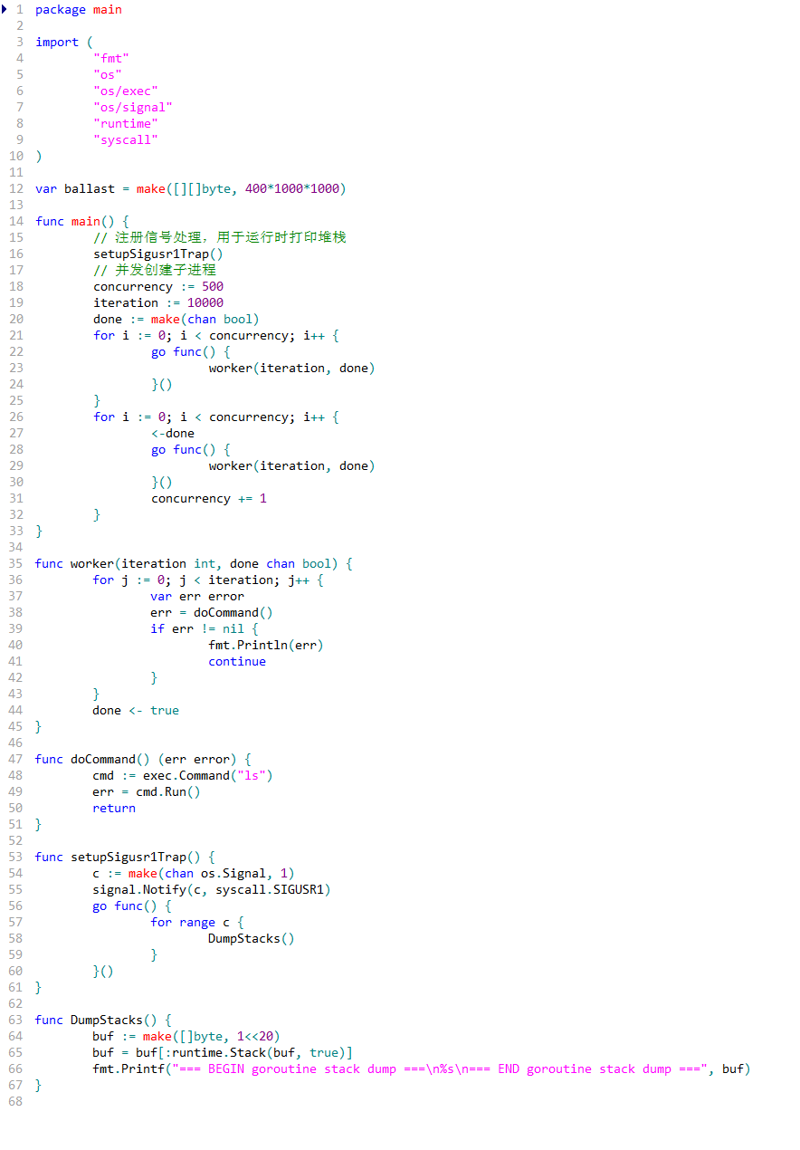 我浏览了一下出现该问题的业务代码,大概的使用方式是父进程调用 os/exec 下的 Command 开子进程执行 shell 命令。Command 后面会调用 golang 封装的 forkExec 来开子进程并执行命令,forkExec 使用了 ForkLock。