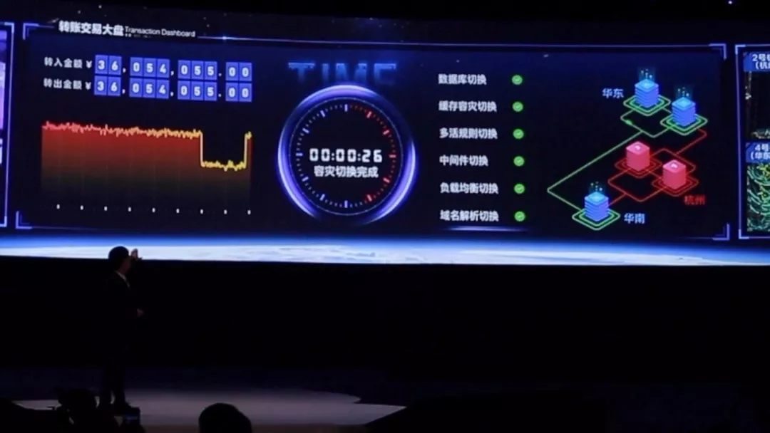 就在一个月前,今年的杭州云栖大会上,蚂蚁金服副CTO胡喜现场模拟剪断支付宝近一半的服务器光缆。只用了26秒,模拟环境中的支付宝就完全回复了正常,这背后即是OceanBase城市级别故障的自愈能力。