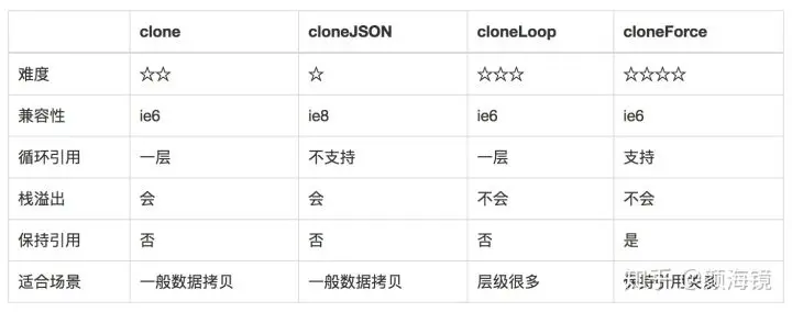 clone(a) // Maximum call stack size exceeded 直接死循环了有没有,/(ㄒoㄒ)/~~关于循环引用的问题解决思路有两种,一直是循环检测,一种是暴力破解,关于循环检测大家可以自己思考下;关于暴力破解我们会在下面的内容中详细讲解