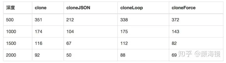 cloneJSON的速度只有clone的50%,很容易理解,因为其会多进行一次递归时间