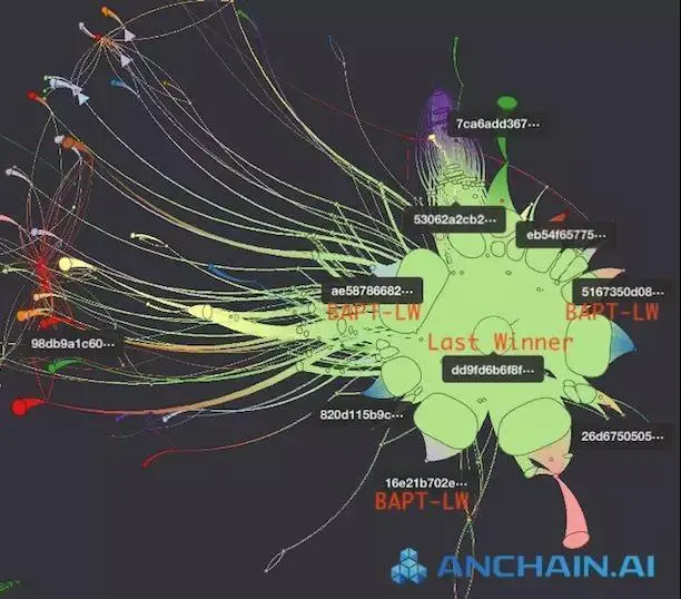 - 交易安全案例:区块链高级持续威胁 Blockchain Advanced Persistent Threat(BAPT)。这是 AnChain.ai 的 AI 驱动的态势感知平台 (SAP) 于 2018年8月,史上首次发现并定义的区块链黑客军团。该新闻成为8月份区块链安全圈的重大突破事件。
