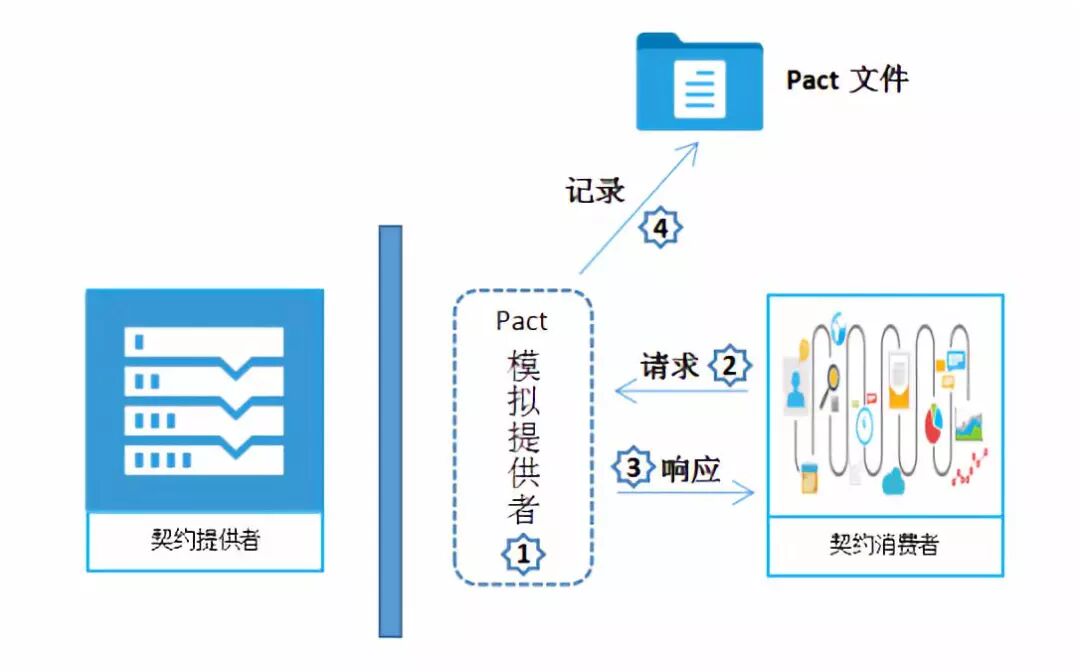 服务消费者通过建立模拟提供者的Mock,可以对请求、响应和相关信息记录下来,成为一个Pact文件。这个文件就是消费者与提供者之间的契约。在这个过程中,服务提供者无需进行任何操作。