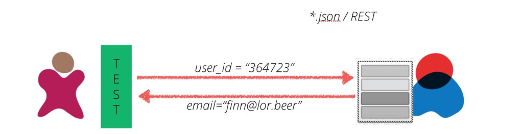 这里我们引入两个技术团队进行相关的测试。左侧的是服务消费者,需要通过ID查询用户的邮件地址,右侧的是服务提供者,负责反馈正确的邮件地址信息。
