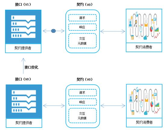 当服务提供者需要对接口做出变更时,仍旧需要遵循契约的要求,以反馈正确的结果,这样,就可以保证服务消费者总是得到正确的信息而不论服务提供者的接口发生怎样的变化。除非消费者端主动的重新订立契约。