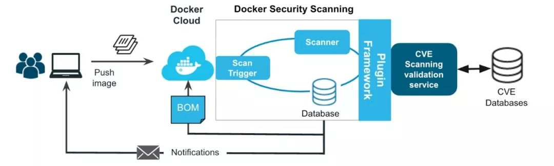用户推送镜像到容器仓库,仓库根据设置的黑白名单选择是否调用Clair进行扫描。