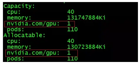 在master节点上查看GPU节点信息,看k8s能否识别节点的GPU资源