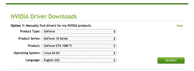 登录nvidia官网https://www.nvidia.com/download/index.aspx设置检索条件下载相应的驱动。