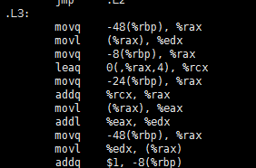 可以看出该部分汇编代码用rax保存累计值没有涉及到取内存的操作,因此在循环中的内存操作变成只有取data数组这一次。