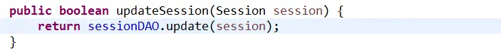 从哨兵监控中可以看到userStorage.updateUserForeignId方法耗时122.86ms,userStorage.updateForeignIdPegging方法耗时71.33ms,这两个方法有成为了SessionProcessHelper.updateUserForeignId方法的主要耗时点,基于对代码的熟悉程度xxxStroge方法都是一些数据库的操作,那么现在可以初步的认为数据库的相关操作可能是问题的根源所在,为了清楚的展示问题,我们先选择一个逻辑较简单的方法分析一下,从上面的哨兵方法监控里可以看到updateSession方法耗时34.88ms,查看该方法代码: