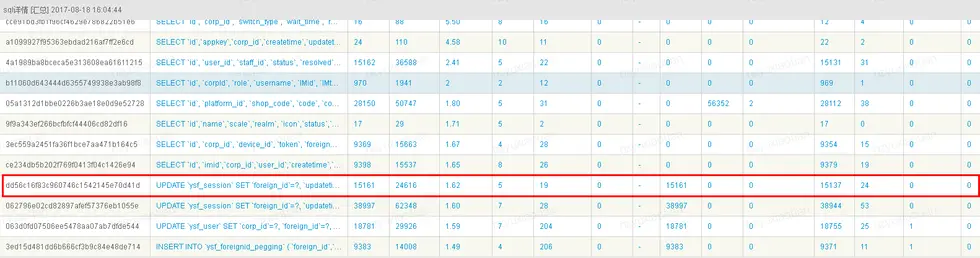 可以看到方法只是有一个简单的dao层的操作,通过查看dao层方法可知该方法仅仅是一个update操作,按常理来说这样的操作需要三十多毫秒的耗时,显然是偏长了,既然如此,我们继续求根溯源利用哨兵的mqlcolletor来验证一下该方法底层的sql操作究竟耗时多少毫秒。此处省略通过dao层方法查找sql语句的过程,直接来看结果:
