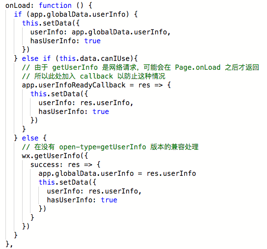 由于 getUserInfo 是网络请求,可能会在 Page.onLoad 之后才返回