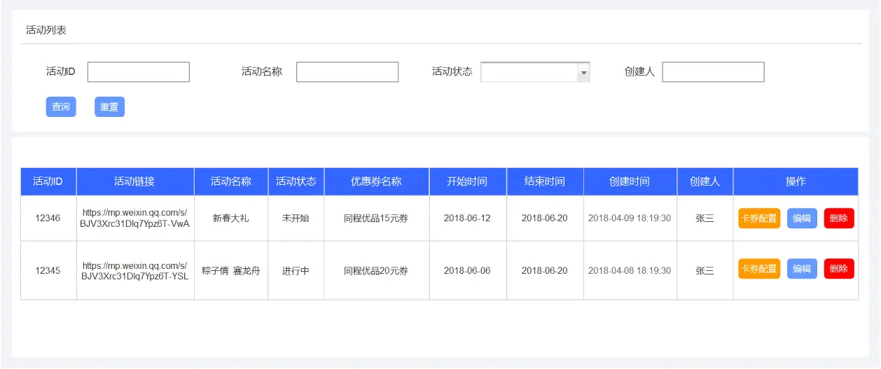 创建的优惠券只是一系列规则的组合,通常还需要一个活动页。活动页上可放一张优惠券,也可放多张,具体看业务需求。