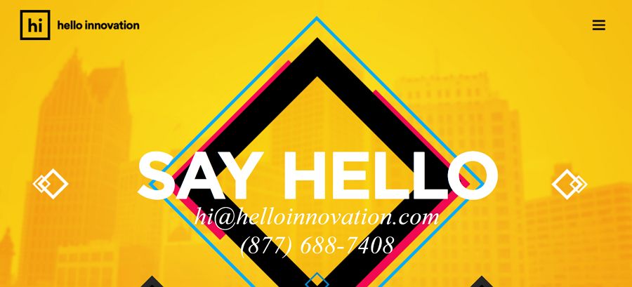 该网站的联系我们页面可以说是我最喜欢的设计之一。它的配色和设计感都非常独特,最大的亮点是Say Hello大文本标题,这个行动召唤按钮非常能够调动用户的情绪,刺激用户产生互动。