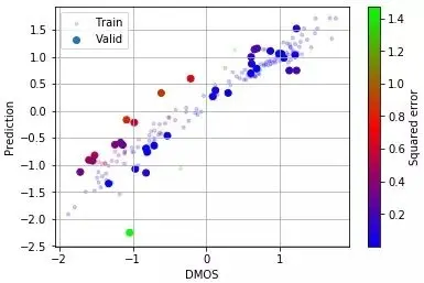 首先针对训练集(即具有已知分数的集合)进行验证,以查看我们计算的视频质量是否与已知值匹配,如下所示。