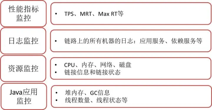 异常测试过程中,异常触发后系统的性能表现,在没有真正执行前无法预判,因此我们需要能够较全面的观察整个系统性能,以便于能够发现所有可能存在的性能瓶颈,让异常测试能够发挥它真正的作用。以下是性能测试过程中需要监控的一些内容。