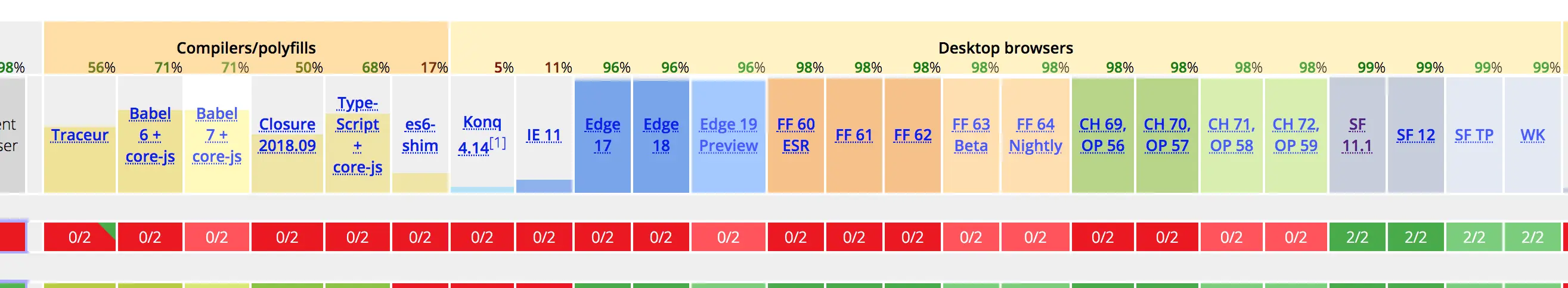 }尾递归了,这段代码在 safari 里以严格模式运行时,不会出现栈溢出错误,因为它对尾调用做了优化。那有多少浏览器会做优化呢?其实在 es6 的规范里,就已经定义了对尾调用的优化,不过目前浏览器对其支持情况很不好:具体见这里