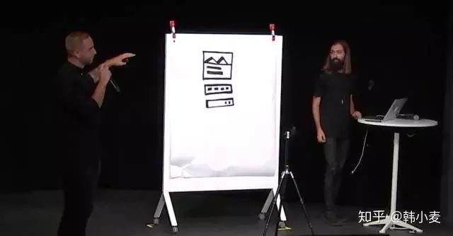 对设计师来说,画草图是一种最自然最直觉式的表现方式,所以他们想试试看能不能跳过中间这几步,直接从草图生成最终的产品原型。由于 Airbnb 内部已经形成了很成熟的设计系统,每个组件都有自己的名字,所以他们认为可以通过训练机器识别不同的草图符号,并将其与之对应;通过训练,机器已经能够识别绝大部分手稿之后,他们就开始让机器从组合的符号直接生成代码,而这些代码在浏览器中就表现为界面了。