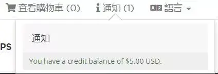 在右上角的通知可以看到已经得到赠送的5美元金额。因为并没有说有效期的事情,应该是一直有效的,这等于3.49美元用将近两个半月,算是非常划算。
