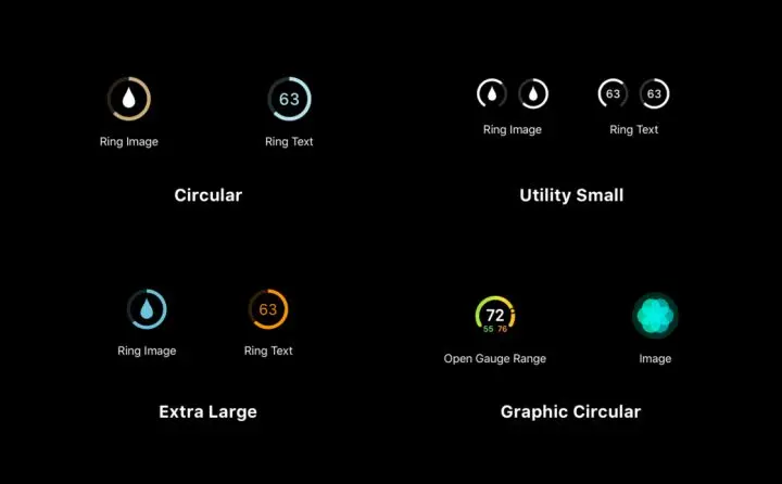 从苹果的角度看,这种不兼容是有理由的:新旧部件的功能和尺寸都明显不同。例如,旧版的环形部件是纯色的,只能包含文本、图标和进度环三者中的两个;而新的 Graphic Circular 部件却主打具有渐变色的进度环,并且可以同时显示图标和多个数字。显然,更多的信息量需要应用的专门适配。另外,新部件的尺寸是 84 像素见方(在 40/42 mm 型号上显示时),相比于旧部件 44 像素见方的尺寸翻了接近两番,如果允许直接沿用,就会造成显示模糊。揣测一下动机,靠「不兼容」来促使开发者适配新系统,也一直是苹果的锦囊妙计之一。