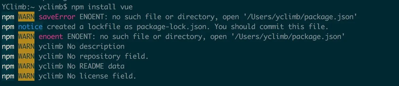 将提示目录下的文件 /Users/yclimb/package-lock.json 修改为 package.json