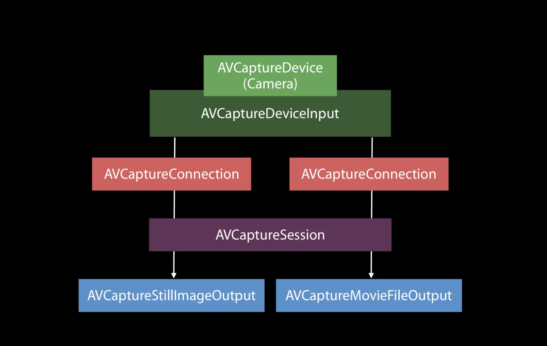 处理 AVFoundation,套路就是配置 session, 添加输入输出, 把视频流的管道打通。