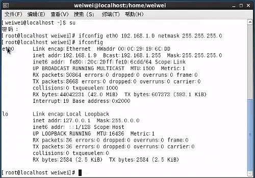 eth0这个设备,下面进行IP地址的配置(注意查看配图的终端命令),并查看ip