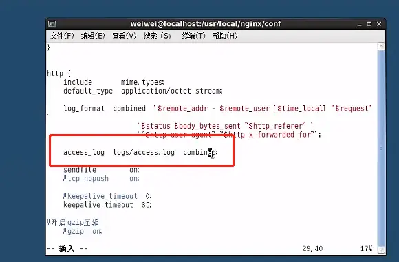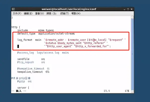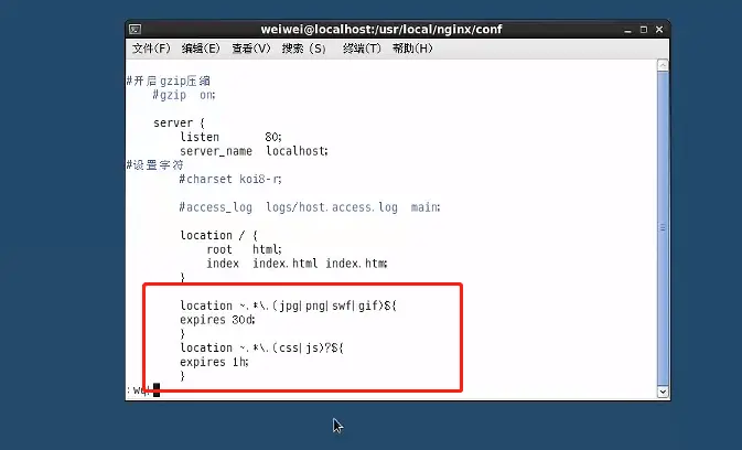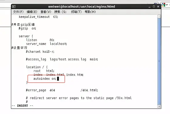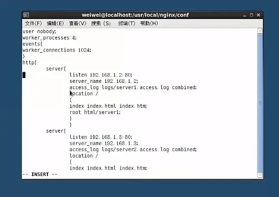 cd nginx.conf vi nginx.conf