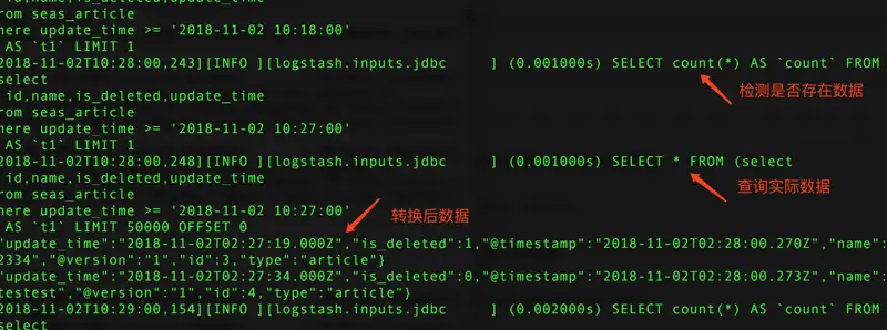 运行(查看控制台扫描、添加纪录) 如果首次全亮同步,去掉配置文件中where条件