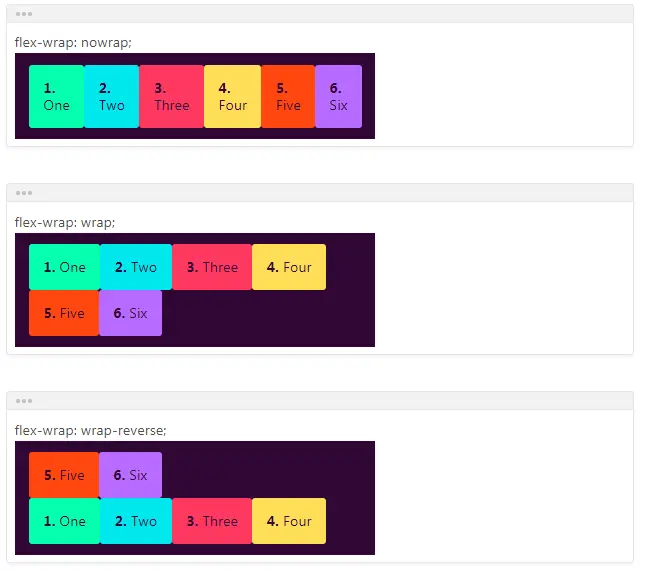 nowrap。reverse表示逆序。flex-wrap: nowrap | wrap | wrap-reverse;