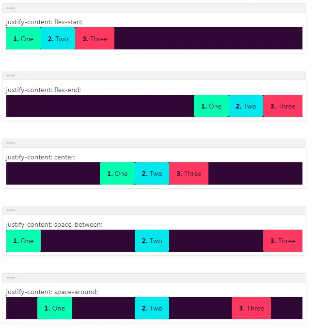 justify-content:决定容器内项目在主轴上对齐方式。默认左对齐