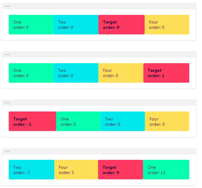 order:定义项目在容器主轴方向上的排列顺序,数值越小排列越靠前。默认为 0 。