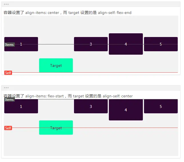 align-self:用于设置单个项目在交叉轴上对齐方式,可覆盖容器的