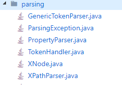 Mybatis 解析配置文件的类主要在 parsing 包下,该包下只有 6 个类,如下所示: