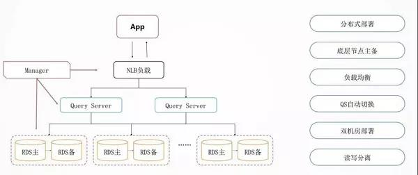 分布式数据库最最下面是 RDS,是主备的,通过 MySQL 的内核开发能力,我们能够实现主备切换数据零丢失。