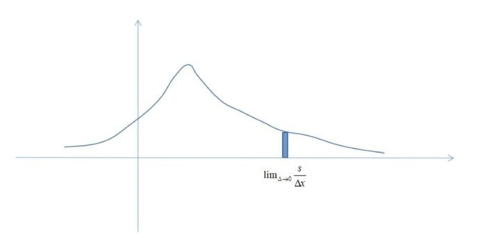 把分布表推广到无限情况,就可以得到连续型随机变量的概率密度函数。此时,随机变量取每个具体的值的概率为0,但在落在每一点处的概率是有相对大小的,描述这个概念的,就是概率密度函数。你可以把这个想象成一个实心物体,在每一点处质量为0,但是有密度,即有相对质量大小。