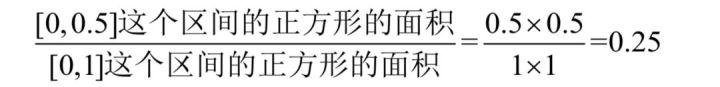 在这里,随机点所落的位置坐标(x, y)的分量x和y都是[0, 1]区间内的实数,这有无限多种情况,不能再像之前那样把所有的情况全部列出来,统计出这些情况的数量,然后和总情况数相除得到概率值。而是使用了“面积”这一指标来计算。看来,对这种类型的随机事件,我们得借助于“长度”,“面积”,“体积”这样的积分值来计算。