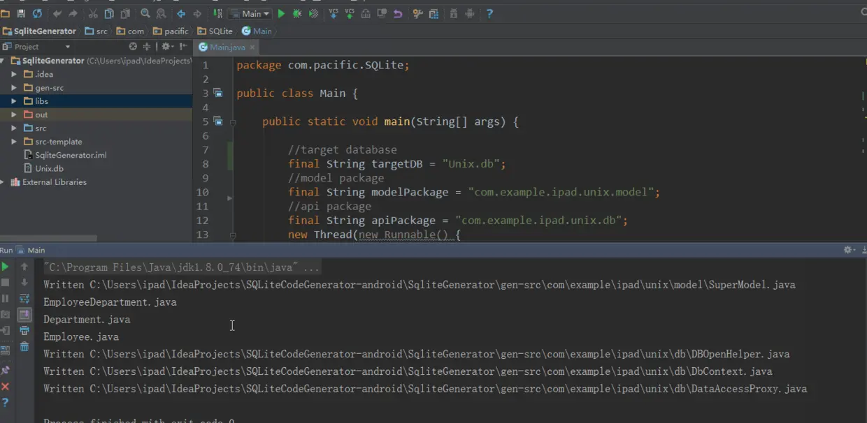 修改相应的配置之后,run一下项目,这样就会在项目根目录下的文件夹gen-src生成目标代码。最后你把目标代码复制到你的android工程下即可。 [使用说明]:www.jianshu.com/p/1872009db… [项目地址]:github.com/ThePacific/…