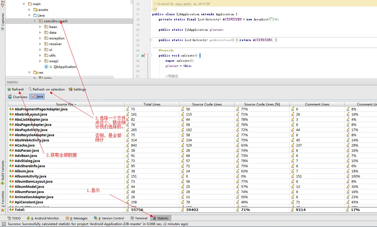 作用:查看代码行数 安装步骤:Android studio-Settings-Plugins-搜:Statistic 效果预览: