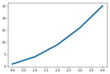 plt.plot(squares, linewidth=5) # linewidth参数用来设置线条粗细