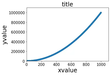 plt.axis([0, 1100, 0, 1100000]) # 这里对应的是x,y的最小值与最大值