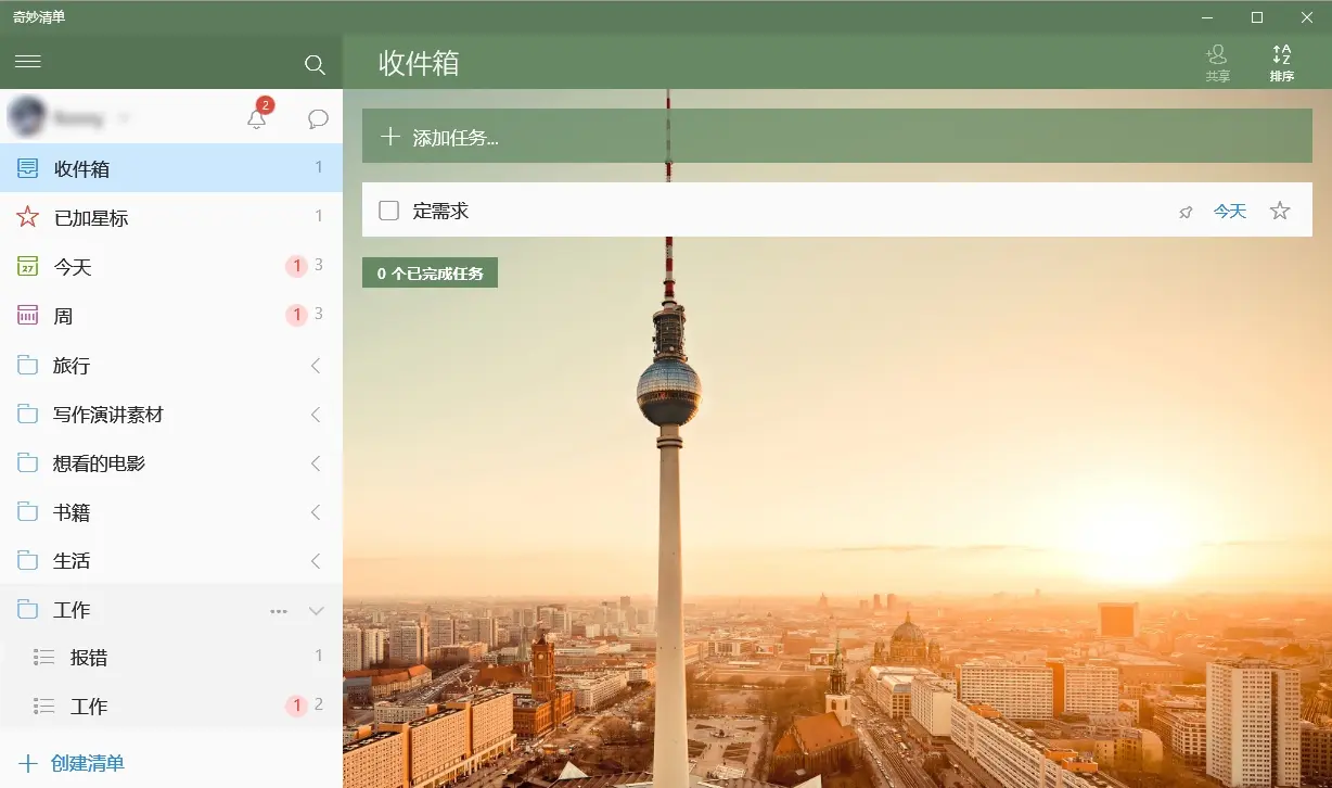 2、清单软件——wonderList(奇妙清单)