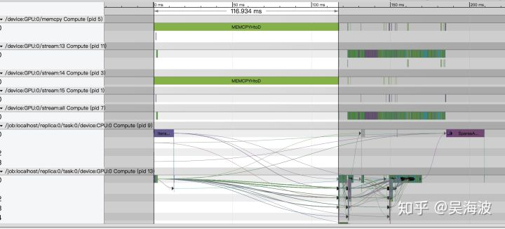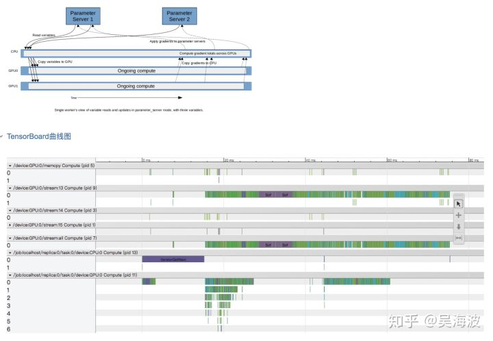 tf的Variable更新需要在cpu和gpu中copy数据,大部分的情况,这个都没有问题。然后我们场景的id Embedding的量级对比图像或者NLP大很多,因此需要copy的数据较大。看了下tracing的统计,平均要花100ms,导致我们的gpu利用率很低